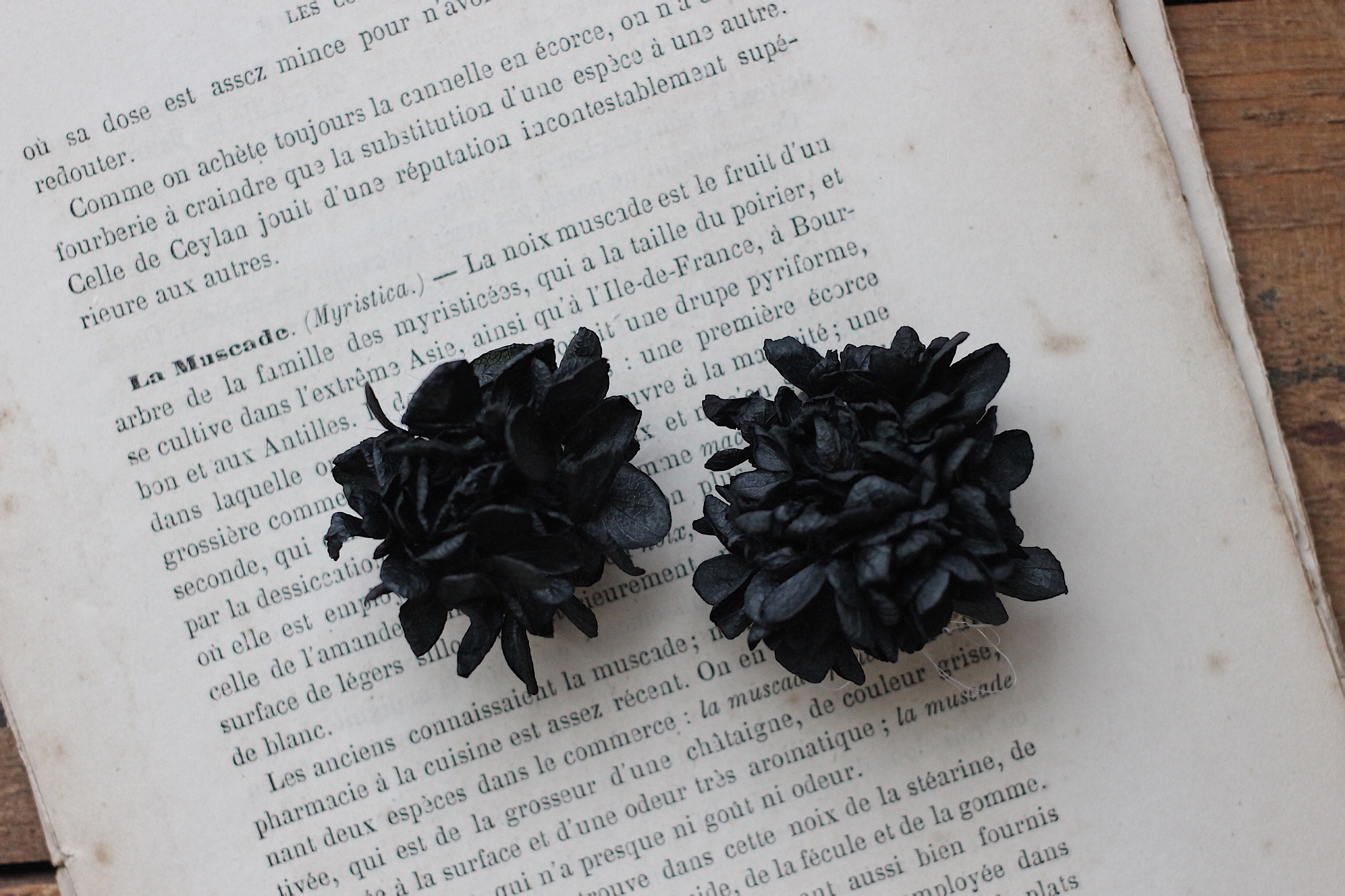 生花を半年〜2年ほど綺麗な状態に保てる様に特殊加工されているお花です。元は生花ですので大変繊細です。装着される際は、極力お花に触らず金具部分をお持ち頂くことをお勧めいたします。保存場所は、直射日光を避けた湿度の低いところでお願いいたします。また、万が一水分を含みますと衣服へ色移りしますので十分にお気をつけてご使用いただけますと幸いです。